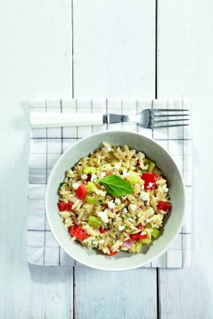 Υλικά (για 4 άτομα) 4 κ.σ. έ.π. ελαιόλαδο και λίγο επιπλέον, για το τέλος 4 κ.σ. κρεμμύδι, ψιλοκομμένο 500 γρ. κριθαράκι χονδρό 1 κ.γ. αλάτι ½ φλ. λευκό ξηρό κρασί 1,5 λίτρο ζεστό νερό 1 κ.γ. μαύρο πιπέρι και λίγο επιπλέον, για το τέλος 250 γρ. φέτα, τριμμένη και λίγη επιπλέον, για το τέλος 1 […]