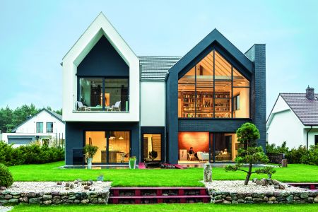 Δύο τετράγωνοι όγκοι με επικλινείς στέγες και ένας ασύμμετρος κύβος. Γεωμετρική περιγραφή μιας κατοικίας επιφάνειας 290 τ.μ., η οποία διατηρεί