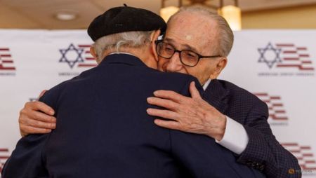 Δύο επιζώντες του Ολοκαυτώματος, ο Τζορτζ Μπέρσι, διαπρεπής χειρουργός στο Λος Αντζελες, και ο Φρανκ Σατς, συγγραφέας και αρθρογράφος, αγκαλιάστηκαν για πρώτη φορά 78 χρόνια μετά τον εγκλεισμό τους στα στρατόπεδα καταναγκαστικής εργασίας των ναζί.