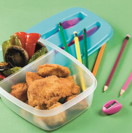ΥΛΙΚΑ (για 4 παιδιά) 2 στήθη κοτόπουλου, σε φέτες πάχους 2 εκ. 1 αβγό 125 γρ. γαλέτα 250 ml έ.π. ελαιόλαδο και λίγο επιπλέον για τα λαχανικά 1 μελιτζάνα, σε ροδέλες πάχους 1 εκ. 1 κολοκυθάκι, σε ροδέλες πάχους 2 εκ. 1 κόκκινη πιπεριά, ξεσποριασμένη και κομμένη στα 4 1 πράσινη πιπεριά, ξεσποριασμένη και κομμένη […]