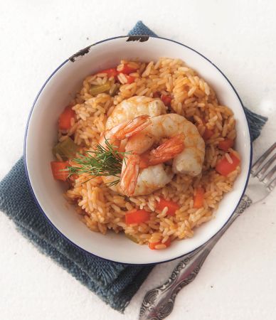 ΥΛΙΚΑ (για 4 άτομα) 12 γαρίδες No 1, κατεψυγμένες, καθαρισμένες 3 κ.σ. έ.π. ελαιόλαδο 1 πορτοκαλί πιπεριά, σε κυβάκια ½ σκελίδα σκόρδο αλάτι, πιπέρι 1/3 ποτηράκι του κρασιού ούζο 1 συσκευασία πιλάφι αραμπιάτα ΕΚΤΕΛΕΣΗ Ξεπαγώνουμε τις γαρίδες. Σε αντικολλητικό τηγάνι, σε μέτρια φωτιά, ζεσταίνουμε το ελαιόλαδο και σοτάρουμε την πιπεριά για 1-2 λεπτά, μέχρι να […]