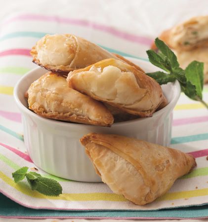 ΥΛΙΚΑ (για 24 κομμάτια) 250 γρ. ανθότυρο, τριμμένο 150 γρ. κατίκι Δομοκού 1 αβγό 2 κ.σ. γάλα αλάτι, φρεσκοτριμμένο πιπέρι 1 ματσάκι δυόσμο, ψιλοκομμένο 4 φύλλα κρούστας EKTEΛΕΣΗ Σε ένα μπολ ανακατεύουμε το ανθότυρο με το κατίκι. Σε ένα άλλο, χτυπάμε το αβγό με το γάλα και προσθέτουμε τα 2/3 του μείγματός τους στα τυριά. […]