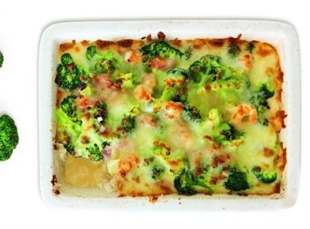 ΥΛΙΚΑ (για 4 άτομα) 750 γρ. μπρόκολο, κομμένο σε μπουκετάκια λίγο βούτυρο, για την επάλειψη του σκεύους 4 φέτες μπέικον, ψιλοκομμένες 10 γαρίδες Νο 2, καθαρισμένες* ή κατεψυγμένες ½ σκελίδα σκόρδο, λιωμένη 50 ml λευκό ξηρό κρασί 4κρόκους αβγών 1 κ.σ. αλεύρι μαλακό 1 φλ. φρέσκο γάλα 200 γρ. στραγγιστό γιαούρτι, 2% λιπαρά αλάτι, πιπέρι […]