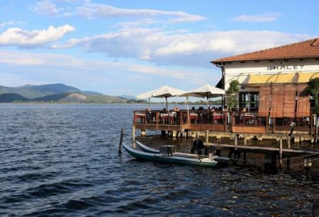 Ενας οριζόντιος υδάτινος καθρέφτης με σπαθόχορτα ανάμεσα στα έλη, με ορίζοντα απόλυτης γλυκιάς ηρεμίας κάτω από τις απόμακρες Απουανές Αλπεις