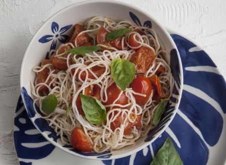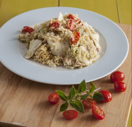 Μαγειρεύουμε σε 30’ ένα εύκολο γεύμα: φιλέτο γλώσσας με ρύζι μπασμάτι, πέστο βασιλικού και ντοματίνια.