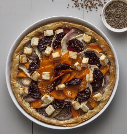 Φτιαγμένη με πολύχρωμες ρίζες (από παντζάρια και σελινόριζες μέχρι καρότα).