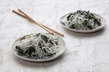 Vegan πιάτο ζυμαρικών με το άρωμα του δυόσμου και του σκόρδου.