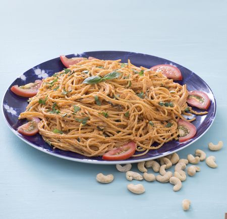 Τα κάσιους που χτυπάμε στο μπλέντερ μαζί με τις φρέσκιες ντομάτες δίνουν μοναδική κρεμώδη υφή στην σάλτσα.