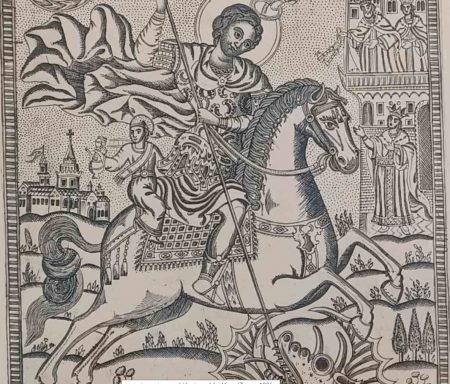 Ο δημοφιλής Αγιος Γεώργιος, τροπαιοφόρος και απελευθερωτής και η ιστορία με τον δράκοντα στο δημοτικό τραγούδι αλλά και στο χαρακτικό του Δανιήλ στο Αγιον Ορος.