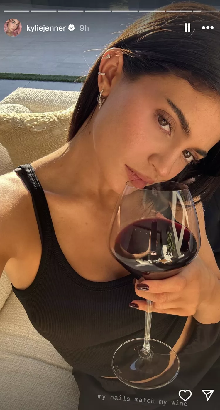 Η Kylie Jenner δημοσίευσε μια φωτογραφία στο Instagram της, η οποία παρουσίαζε μερικές selfies δικές της αλλά και της κολλητής της, Stasie Karanikolaou. Τα νέα νύχια της διάσημης επιχειρηματία είχαν μια ωραία μπορντό απόχρωση που τράβηξε αμέσως την προσοχή μας. Η ίδια συνόδευσε την ιστορία της μάλιστα με τη λεζάντα: "My nails match my wine" ποζάροντας με ένα ποτήρι κρασί και πράγματι η ομοιότητα του χρώματος των νυχιών και του κρασιού ήταν απίστευτη.