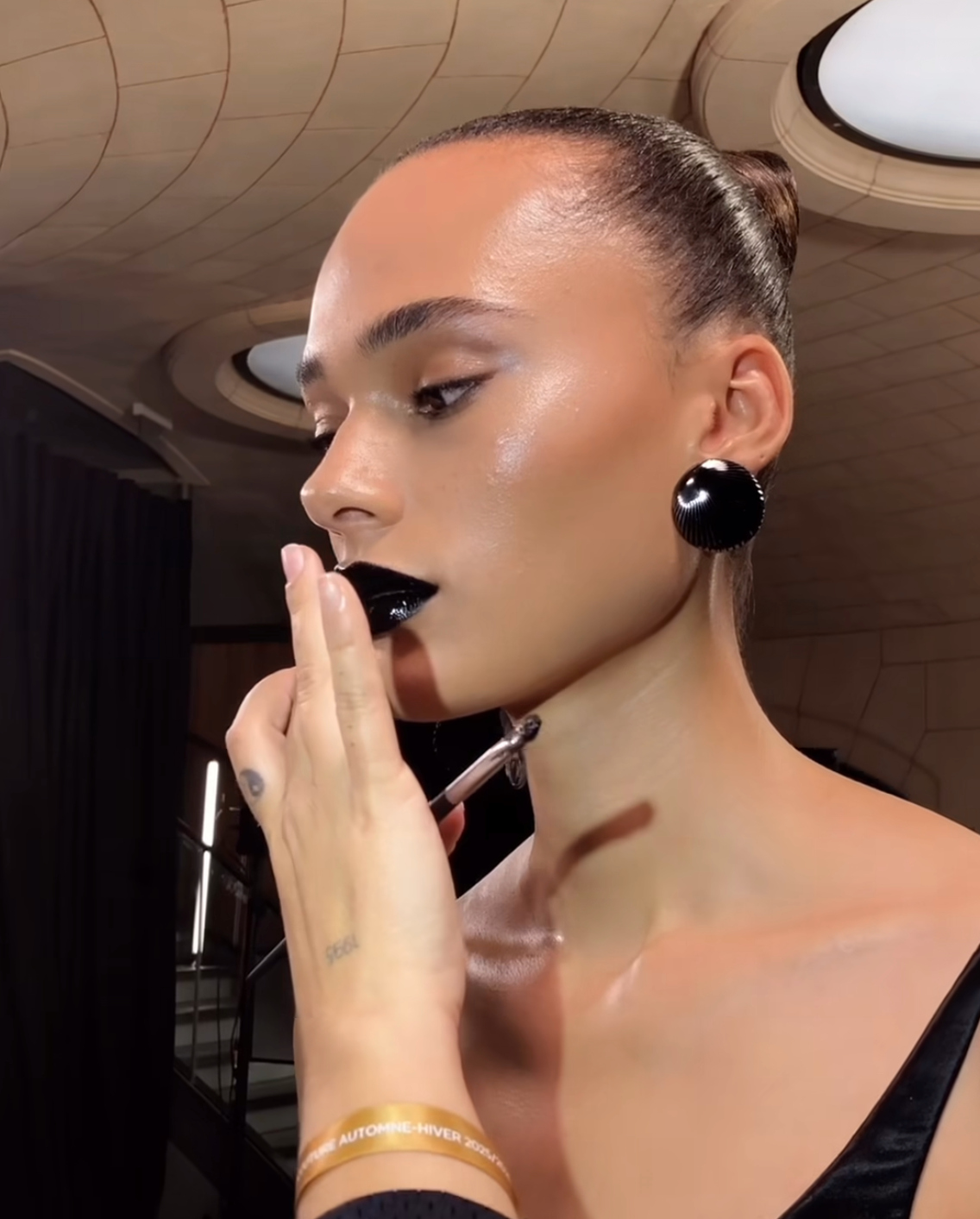 Σε έναν χώρο όπου το μακιγιάζ συχνά ακολουθεί τους κανόνες της φυσικότητας και της λάμψης, η επιλογή του έντονου, βελούδινου μαύρου κραγιόν λειτούργησε ως μια πράξη αντίστασης απέναντι στα αναμενόμενα. Το beauty look των μοντέλων στο show του Schiaparelli δεν άφησε περιθώρια για αμφιβολίες: το μαύρο στα χείλη δεν ήταν απλώς ένα trend, ήταν δήλωση ταυτότητας.