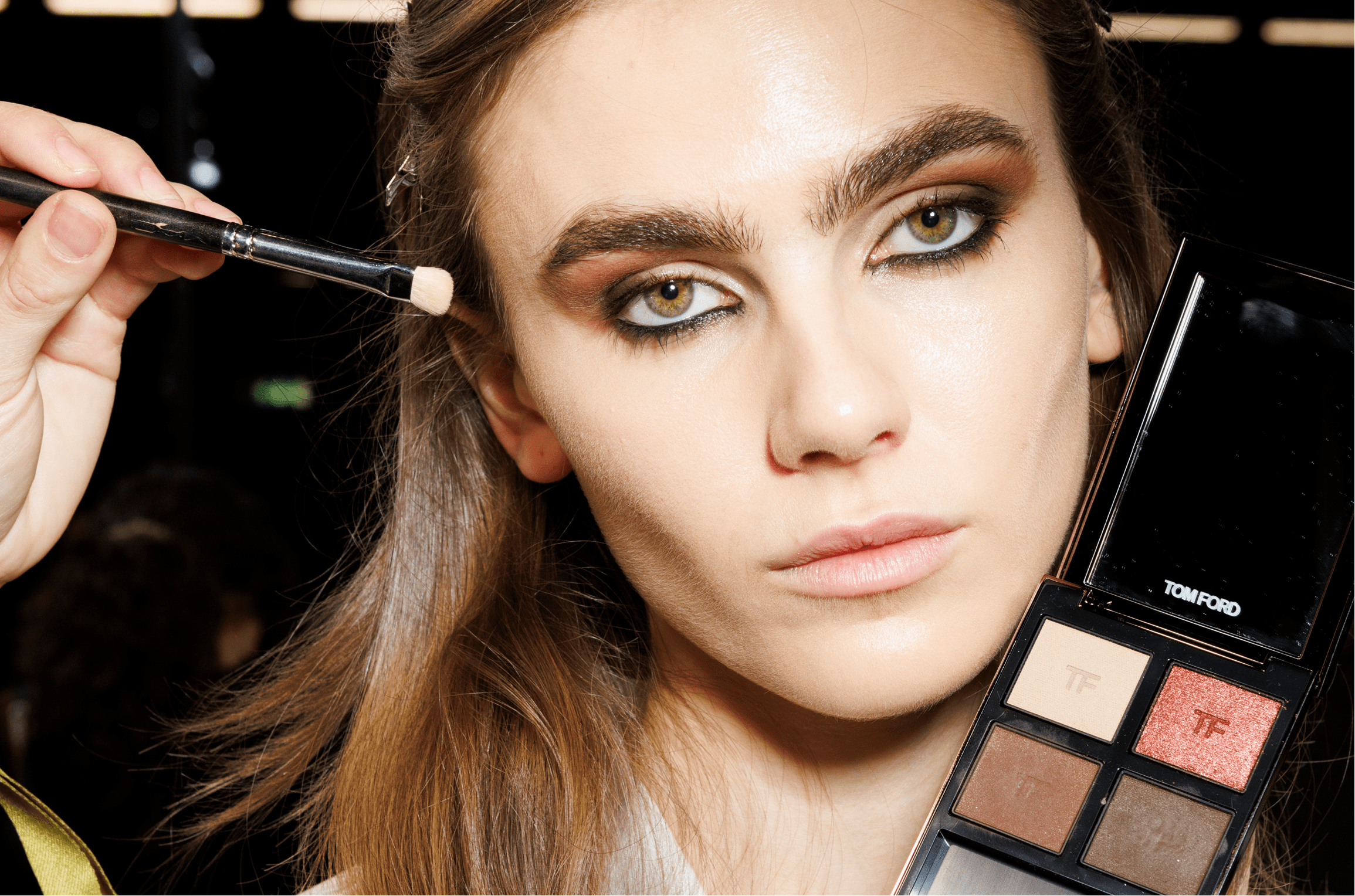 Το επιμελώς ατημέλητο eye look αποτελεί την υπογραφή του TOM FORD. Στο Winter 24 Runway παρουσιάστηκαν τρεις ξεχωριστές παλέτες σε σαγηνευτικές αποχρώσεις –από ζεστές και βελούδινες καφέ μέχρι γυαλιστερές σαν latex λάμψεις.