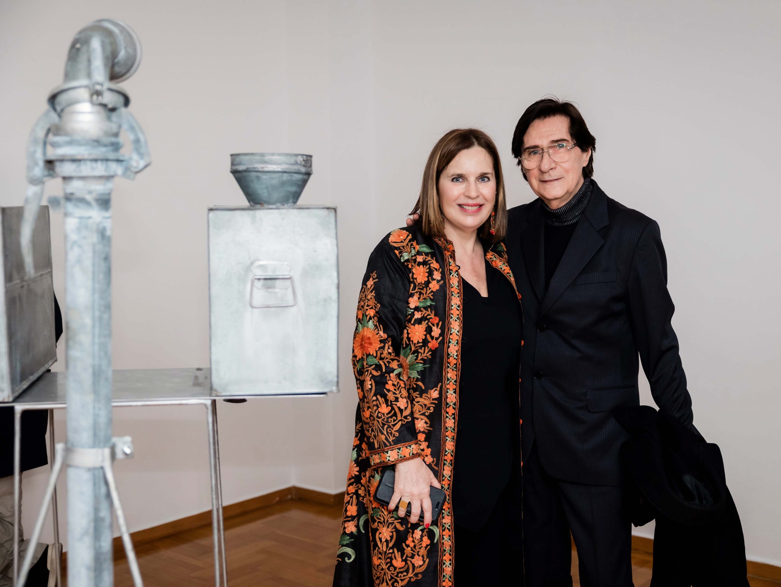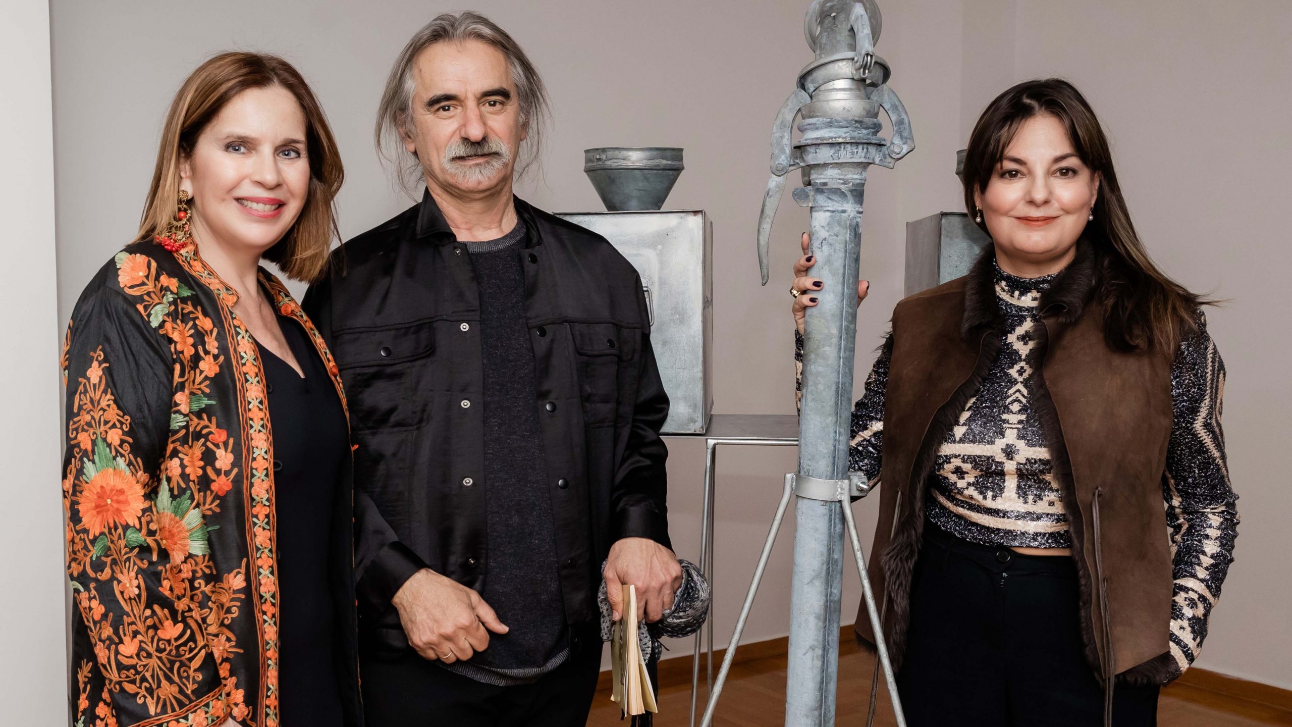 Ο εικαστικός Πάνος Χαραλάμπους, με τις κυρίες Τατιάνα Σπινάρη, διευθύντρια της CITRONNE Gallery και Μαρίνα Μαρίνα Μήλιου-Θεοχαράκη