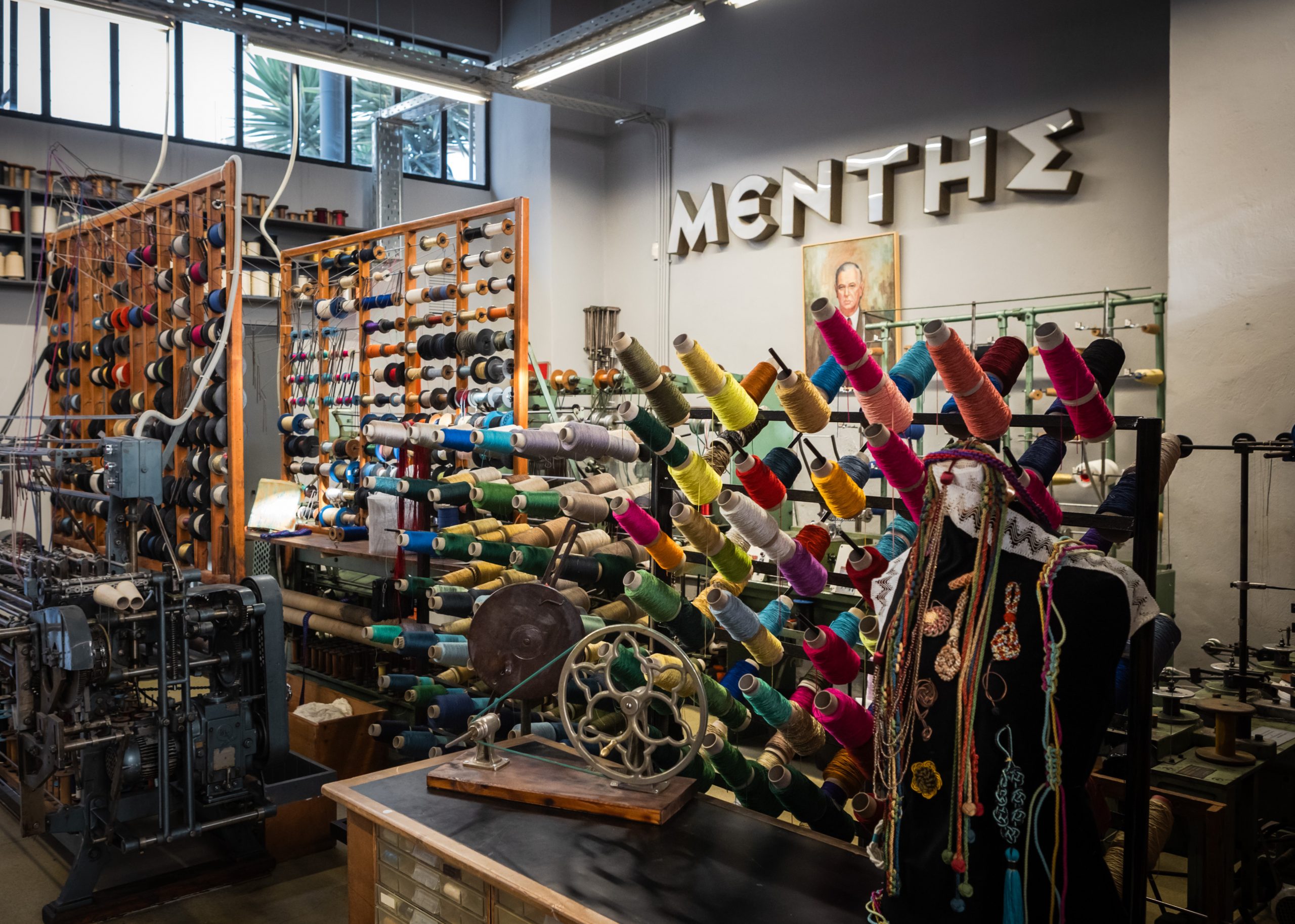 Οι καλεσμένοι είχαν την ευκαιρία να περιηγηθούν στον ιστορικό χώρο του ΝΗ.Μ.Α., που κρατάει ζωντανή την τεχνογνωσία της ταινιοπλεκτικής, θαυμάζοντας από κοντά τους γαλλικούς αργαλειούς ζακάρ, εκεί όπου δεκάδες χρόνια πριν υφάνθηκαν οι πολύχρωμες βαμβακερές τρέσες που κοσμούν σήμερα τα νέα σχέδια της συλλογής, σαν αναμνηστικά σιρίτια μιας άλλης εποχής.