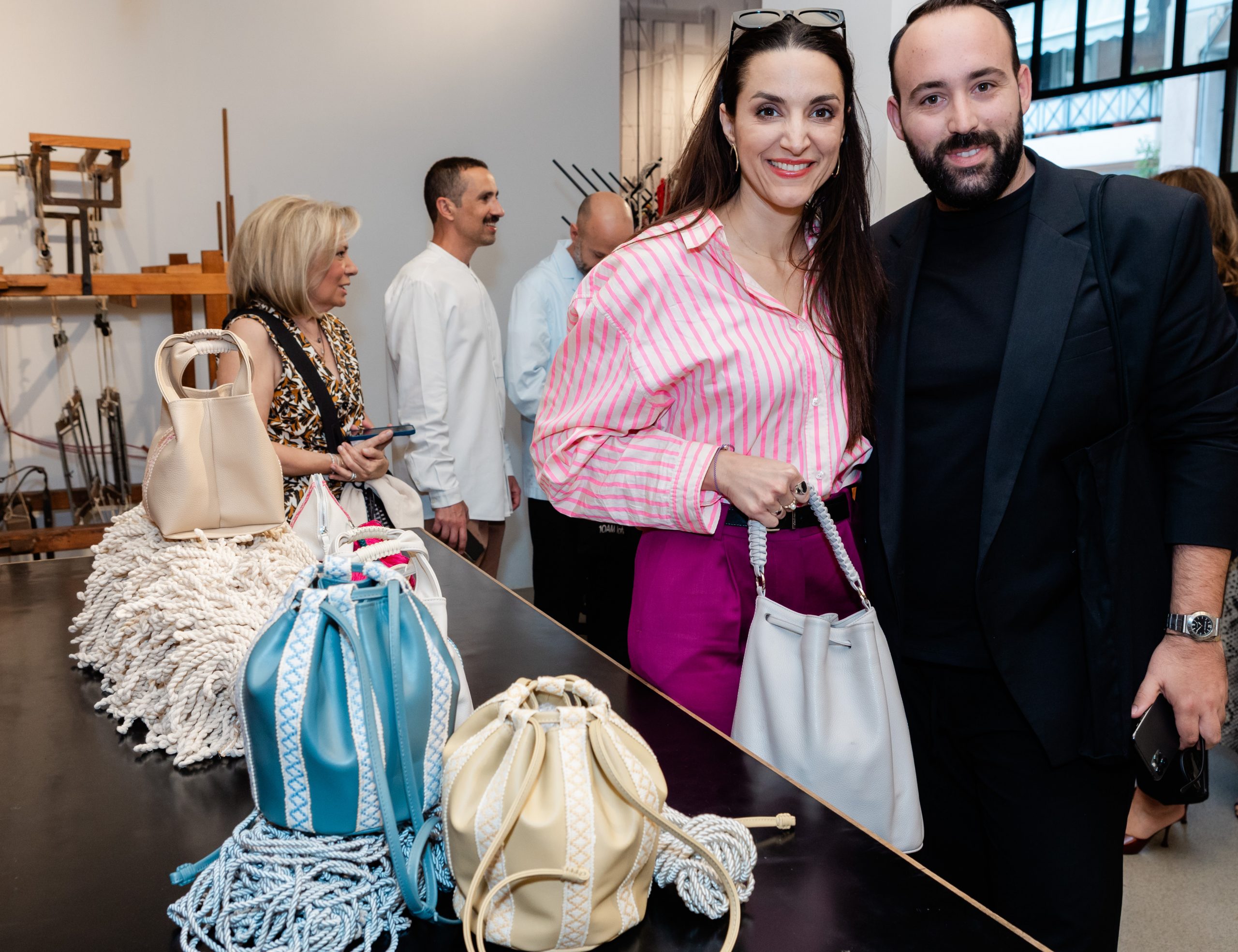 Τρία νέα σχέδια δερμάτινων τσαντών και δύο αξεσουάρ, διακοσμημένα με συλλεκτικά υλικά της Νηματουργίας Μέντης-Αντωνόπουλος, παρουσιάστηκαν για πρώτη φορά σε μια ξεχωριστή εκδήλωση, μαγνητίζοντας τα βλέμματα των προσκεκλημένων με την αυθεντικότητα και την απλότητά τους.