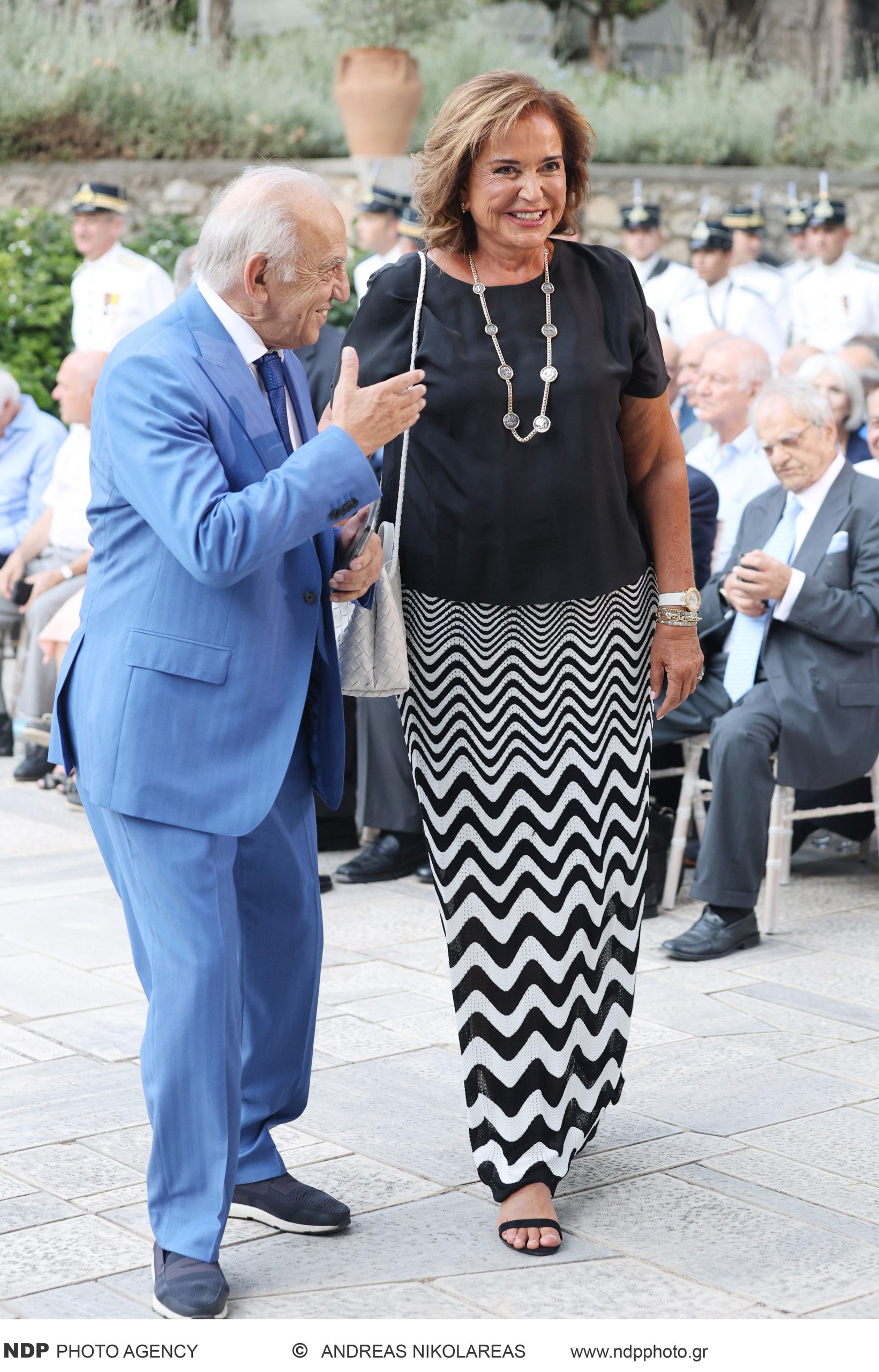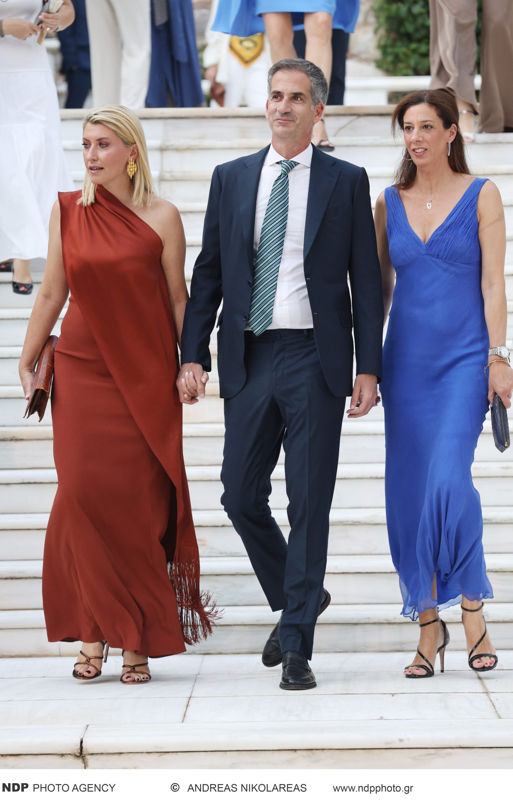 Οι εμφανίσεις των προσκεκλημένων κυριών κινήθηκαν σε ένα ευρύ φάσμα κομψότητας: από μοντέρνα κοστούμια μέχρι αέρινα μάξι φορέματα, με χρώματα και υφές που ταίριαζαν ιδανικά στη θερινή ατμόσφαιρα του απογευματινού event.