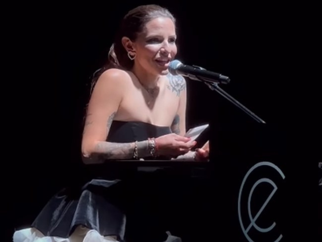 Η Εριέττα Κούρκουλου Λάτση ανέβηκε στη σκηνή για μια συγκινητική ομιλία τονίζοντας πόσο υπερήφανη είναι για το έργο του Save a Greek Stray ενώ ήταν λαμπερή και πανευτυχής, φορώντας ένα υπέροχο μαύρο φόρεμα.