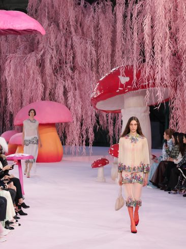 Η αφετηρία της συλλογής ήταν μια ιδιωτική και εξαιρετικά συμβολική στιγμή. Λίγο πριν παρουσιάσει την πρώτη του γυναικεία ready-to-wear συλλογή για τον Dior, ο Anderson επισκέφθηκε τον John Galliano — τον σχεδιαστή που για πολλούς ταυτίστηκε με τη χρυσή εποχή του οίκου στα τέλη της δεκαετίας του ’90 και τις αρχές του 2000. Ο Galliano του χάρισε ένα μικρό μπουκέτο άγριων κυκλάμινων, δεμένων με μαύρη κορδέλα: μια χειρονομία που λειτούργησε σαν άτυπη σκυτάλη ανάμεσα σε δύο δημιουργούς διαφορετικών γενεών.