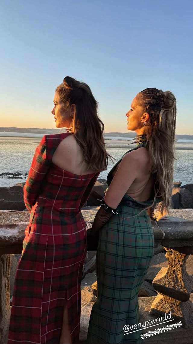 Η Ηλέκτρα εμφανίστηκε με κόκκινο καρό deux pièces και μακριά ουρά, ενώ η Ευγενία Νιάρχου επέλεξε ένα πράσινο φόρεμα της Emilia Wickstead – πιο διακριτικό, αλλά στο ίδιο ύφος. Η Μαρία Ολυμπία με καρό μίνι και τούλι έδωσε έναν πιο παιχνιδιάρικο τόνο, αν και το αποτέλεσμα έμοιαζε περισσότερο με αποκριάτικη glam εκδοχή του Highland look.