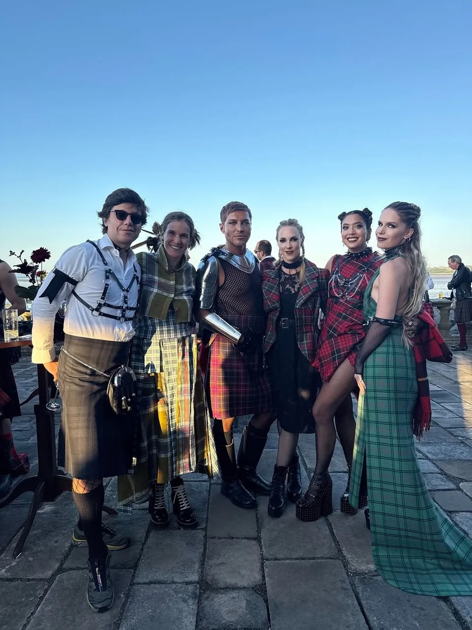 Το θέμα της βραδιάς ήταν ξεκάθαρο: πλήρης εναρμόνιση με την τοπική παράδοση. Το dress code απαιτούσε tartan μοτίβα, κιλτ, πανοπλίες, αξεσουάρ με μεταλλικές λεπτομέρειες και γενικά επρόκειτο για μια εμφάνιση που θύμιζε κάτι ανάμεσα σε σκωτσέζικη βασιλική αυλή και editorial εμπνευσμένο από το Braveheart.