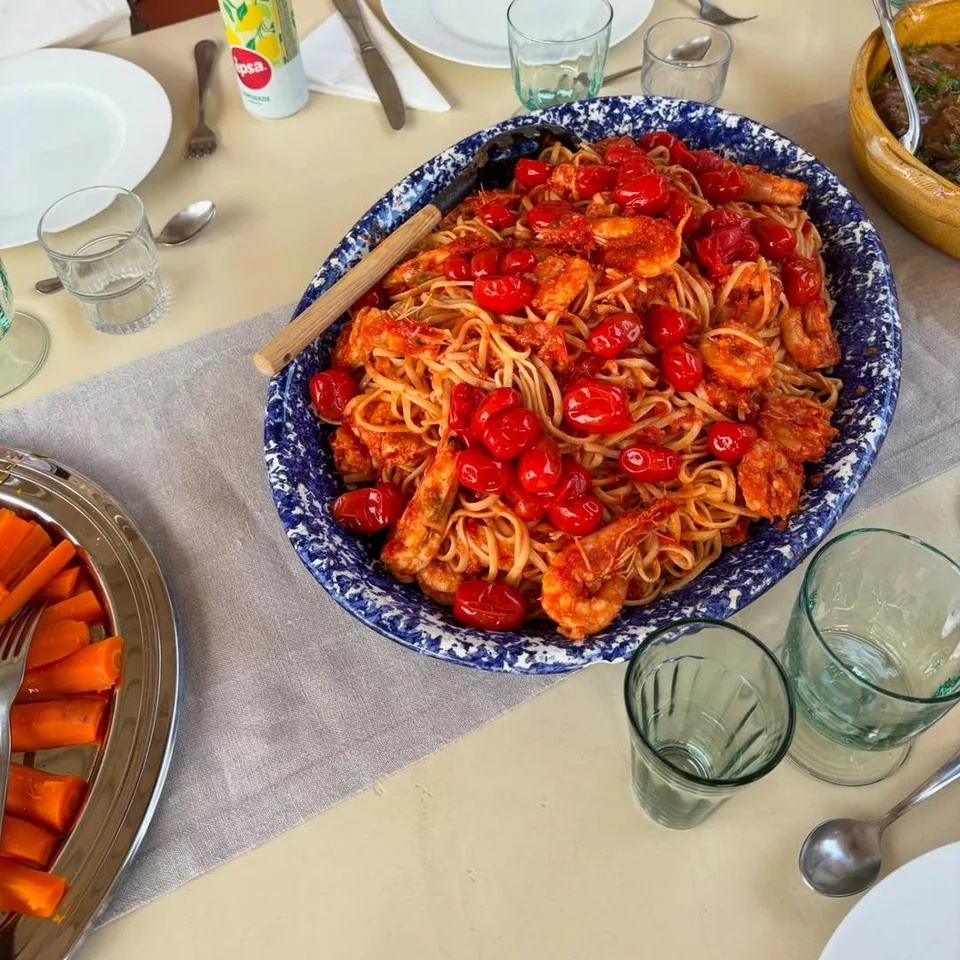 Συγκεκριμένα, δημοσίευσαν φωτογραφίες από το φαγητό που απόλαυσαν, όπως γαριδομακαρονάδα με τοματίνια, ψάρι, χωριάτική σαλάτα, πατάτες και ελιές.
