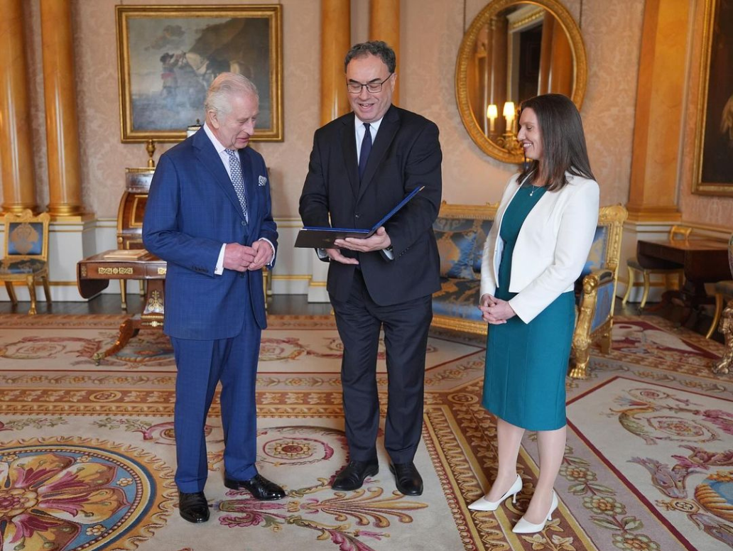 This morning The King was presented with the first banknotes featuring his image during an Audience with Andrew Bailey, Governor of the @BankofEngland, and Sarah John, Chief Cashier and Executive Director of Banking. pic.twitter.com/lZbW18Kuip