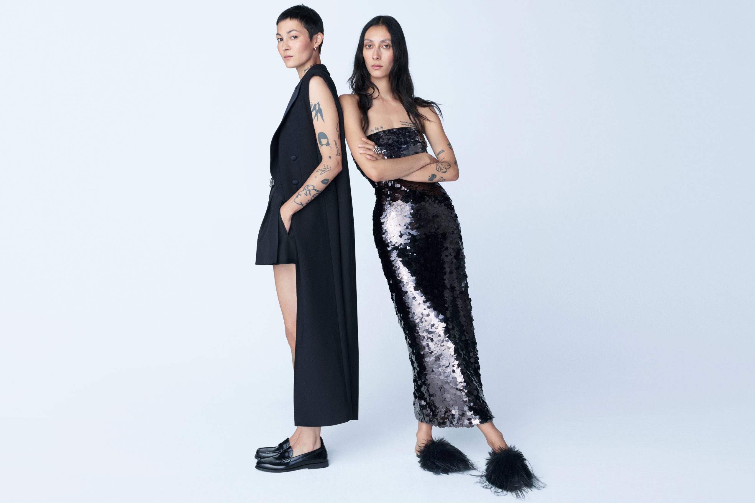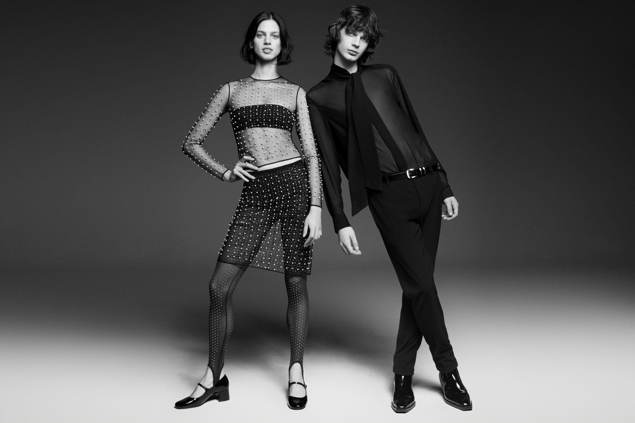 Η αίσθηση είναι κομψή, έντονη και μονοχρωματική, με απρόσμενους όγκους και αναλογίες που δημιουργούν ξεχωριστά στυλ για κάθε γκαρνταρόμπα και κάθε γιορτή. Οι minimal και εκλεπτυσμένες σιλουέτες της συλλογής ενισχύονται με ευφάνταστες διακοσμητικές λεπτομέρειες. Τα ασπρόμαυρα σύνολα αποκτούν λάμψη με παγιέτες, φιόγκους και κεντήματα. Το κλασικό πουκάμισο σμόκιν είναι διακοσμημένο με κρύσταλλα στις μανσέτες, ενώ το κοστούμι σορτς σμόκιν είναι κεντημένο με πλούσιες λεπτομέρειες. Οι ανάγλυφες υφές κυριαρχούν στη συλλογή. Μια νέα ύφανση με κρόσσια που θυμίζει την υφή γούνας διακοσμεί το σετ που αποτελείται από τοπ και παντελόνι. Οι βραδινές τσάντες είναι διακοσμημένες με την ίδια υφή και με κρύσταλλα που προσθέτουν κίνηση– ιδανικές για χορό.