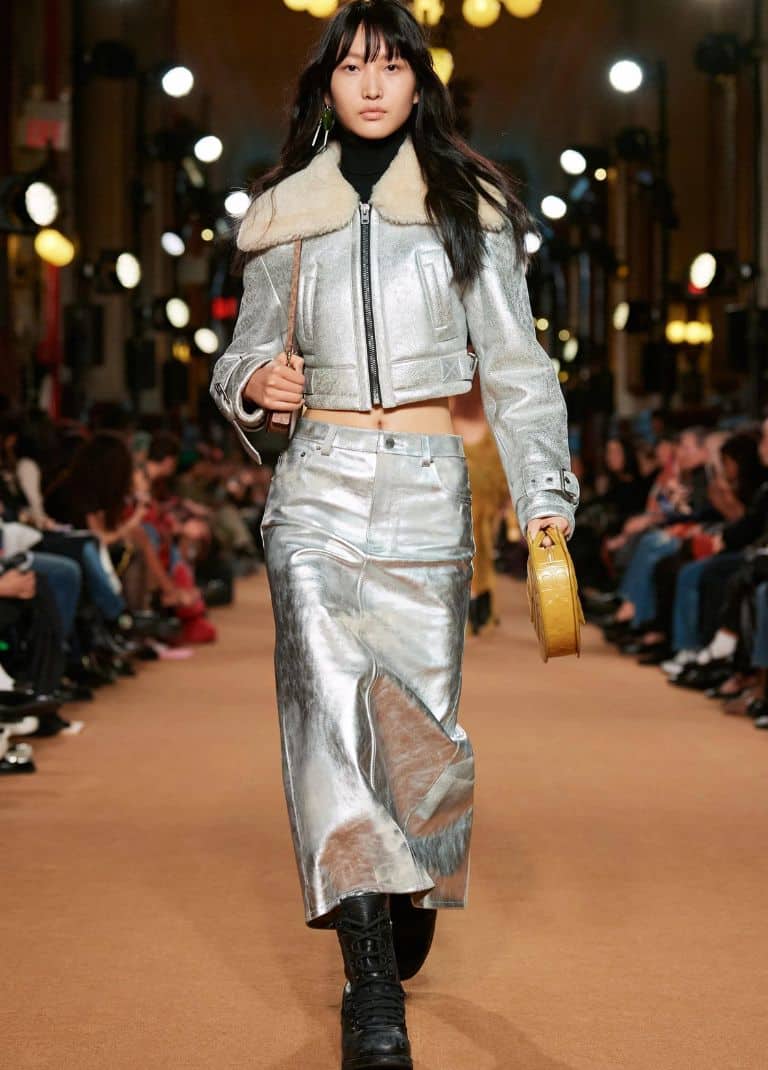 Τα μεταλλικά χρώματα είναι στη μόδα και αυτή τη σεζόν, δεν υπάρχει καμία αμφιβολία γι’ αυτό. Είδαμε χρυσές και πολύχρωμες μεταλλικές αποχρώσεις σε αφθονία, αλλά κυρίαρχο ήταν το ασημί. Πιθανότατα έχετε ήδη δει το ασημί να «βάφει» τα πάντα, από μπαλαρίνες μέχρι δερμάτινα παντελόνια και jackets. Παρουσιάστηκε με αμέτρητους τρόπους, από το εμβληματικό λαμπερό φόρεμα του Rabanne, μέχρι τον Coach.