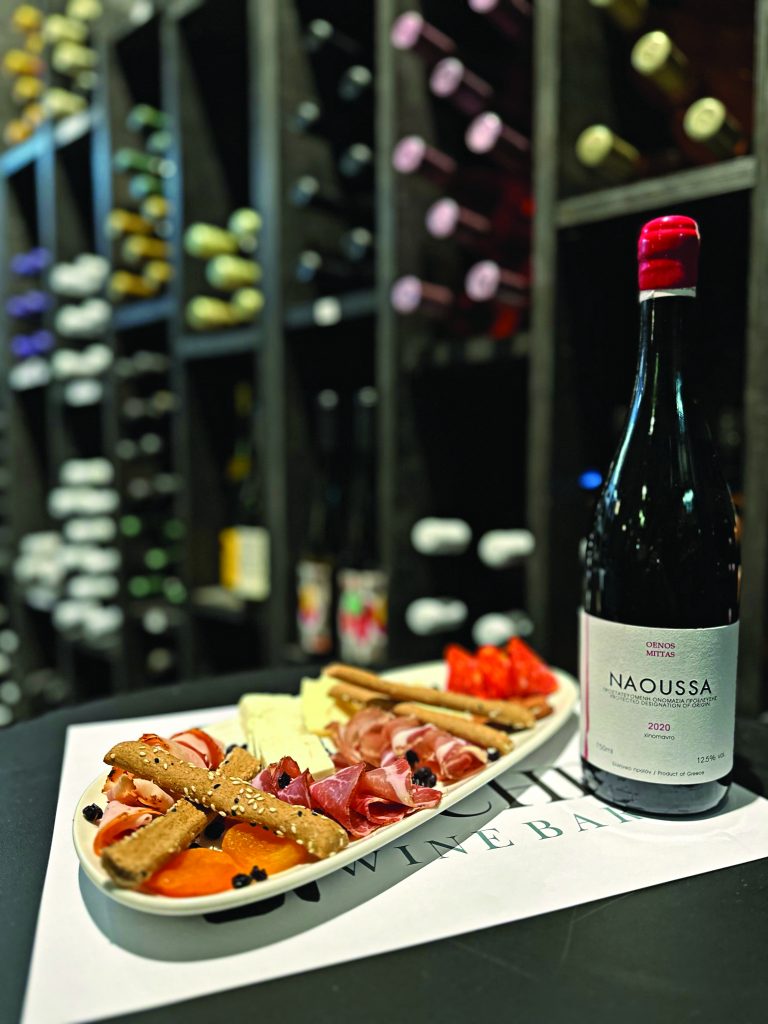 Διαθέτει 130 ετικέτες και 30 επιλογές σε ποτήρι, που ανανεώνονται κάθε μήνα. Αγαπάει τον ελληνικό αμπελώνα (60%) αλλά έχει και αντιπροσωπευτικά δείγματα του ξένου (40%). Στις οινογνωσίες του θα μάθετε για τις ελληνικές γηγενείς ποικιλίες και πώς αυτές συνδυάζονται με τοπικά εδέσματα. Φημίζεται άλλωστε για τις ντόπιες πρώτες ύλες των πιάτων του. Λειτουργεί επίσης ως κάβα.