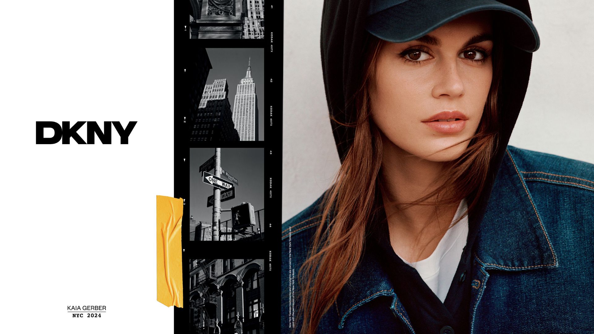Ενσαρκώνοντας το αμερικανικό στιλ με πνεύμα Νέας Υόρκης, η Kaia Gerber αναλαμβάνει τον κεντρικό ρόλο ως το παγκόσμιο πρόσωπο του relaunch του brand, φέρνοντας μια άλλη φινέτσα στην καμπάνια. «Αυτή η σεζόν φέρνει μια εντελώς νέα ενέργεια στη DKNY, με την οποία μπορούμε με εξαιρετική προσήλωση να χτίσουμε πάνω στο DNA του brand», τονίζει ο Jeffrey Goldfarb, EVP του G-III Apparel Groups στο portfolio του οποίου ανήκει η DKNY.