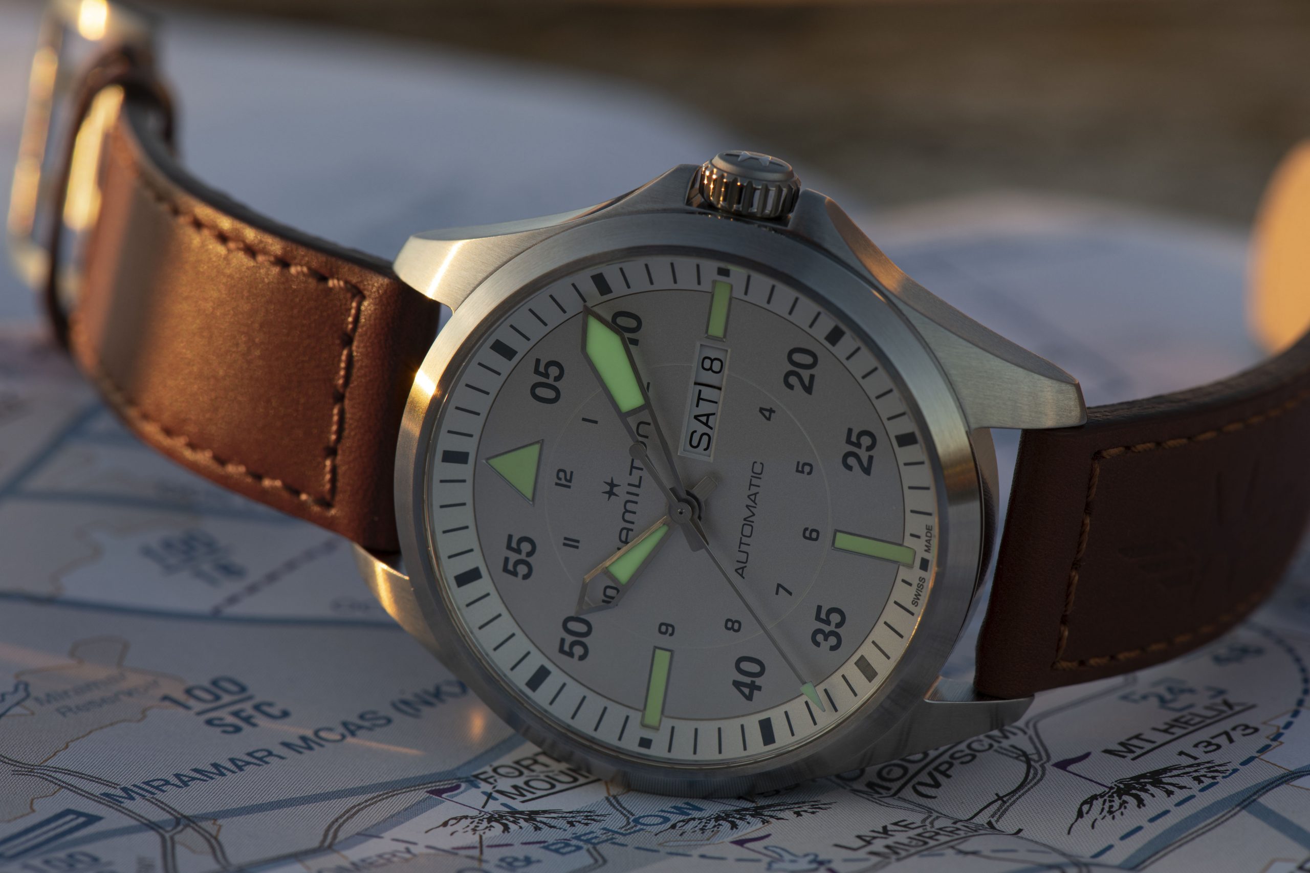 Ο διαχρονικός, εμπνευσμένος από την αεροπορία συνδυασμός από ανοιχτόχρωμο δερμάτινο λουράκι με ασημένιο καντράν θυμίζει τις πρώτες μέρες της ακριβείας στην εναέρια ναυσιπλοΐα, ενώ ο συνδυασμός από σκουρόχρωμο δερμάτινο λουράκι με πράσινο καντράν αποτίνει φόρο τιμής στις ρίζες του Khaki με τις περιπέτειες στην ύπαιθρο.