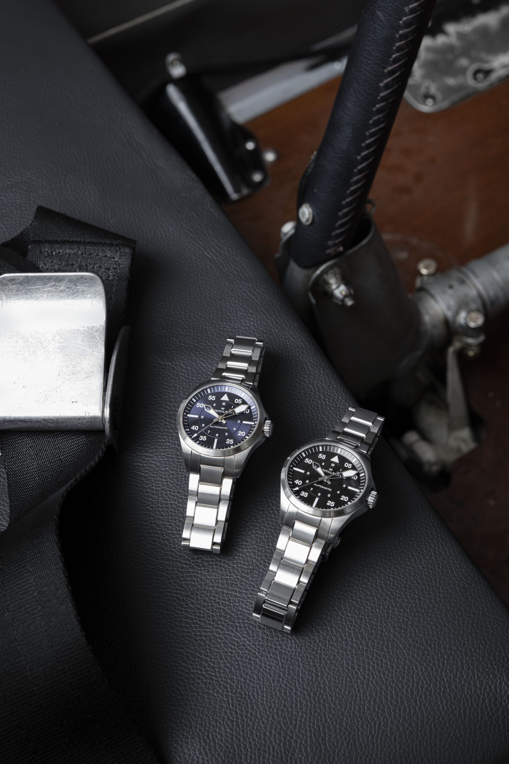 Η συλλογή Khaki Aviation Pilot περιλαμβάνει τέσσερα μοντέλα των 36 mm και τρία μοντέλα των 42 mm. Η συλλογή αποτελεί μια απόκλιση από το status quo στα αεροπορικά ρολόγια προς τα ρολόγια που κατασκευάζονται για καθημερινή χρήση. Ενώ πληρούν τα πρότυπα ακρίβειας για το πιλοτήριο, αυτά τα πιο συμπαγή σχέδια προσαρμόζονται στη ζωή στον ουρανό αλλά και στην ξηρά.