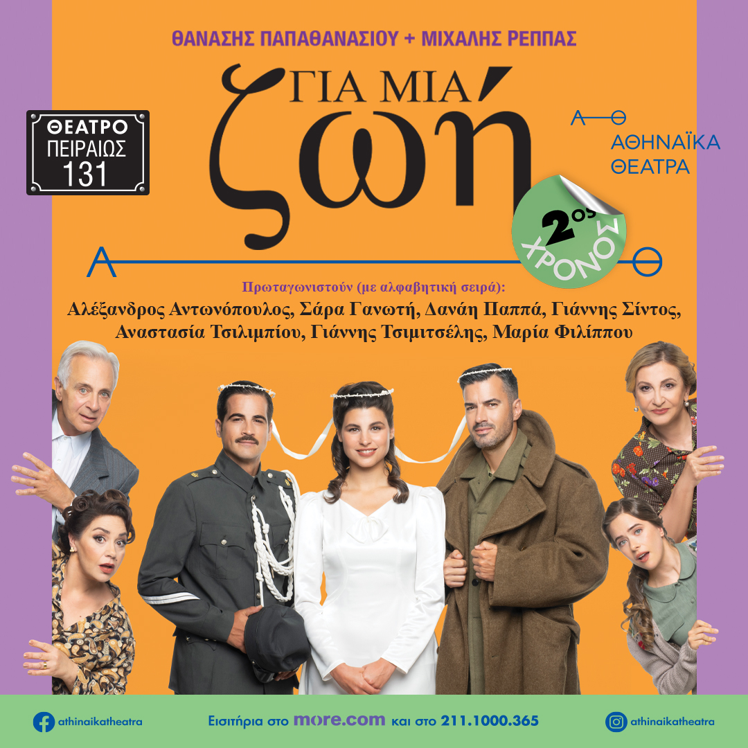 ΓΙΑ ΜΙΑ ΖΩΗ, Θέατρο Πειραιώς 131 σε σκηνοθεσία Ρέππα Παπαθανασίου 4 διπλές προσκλήσεις για 23/10 στις 20:00