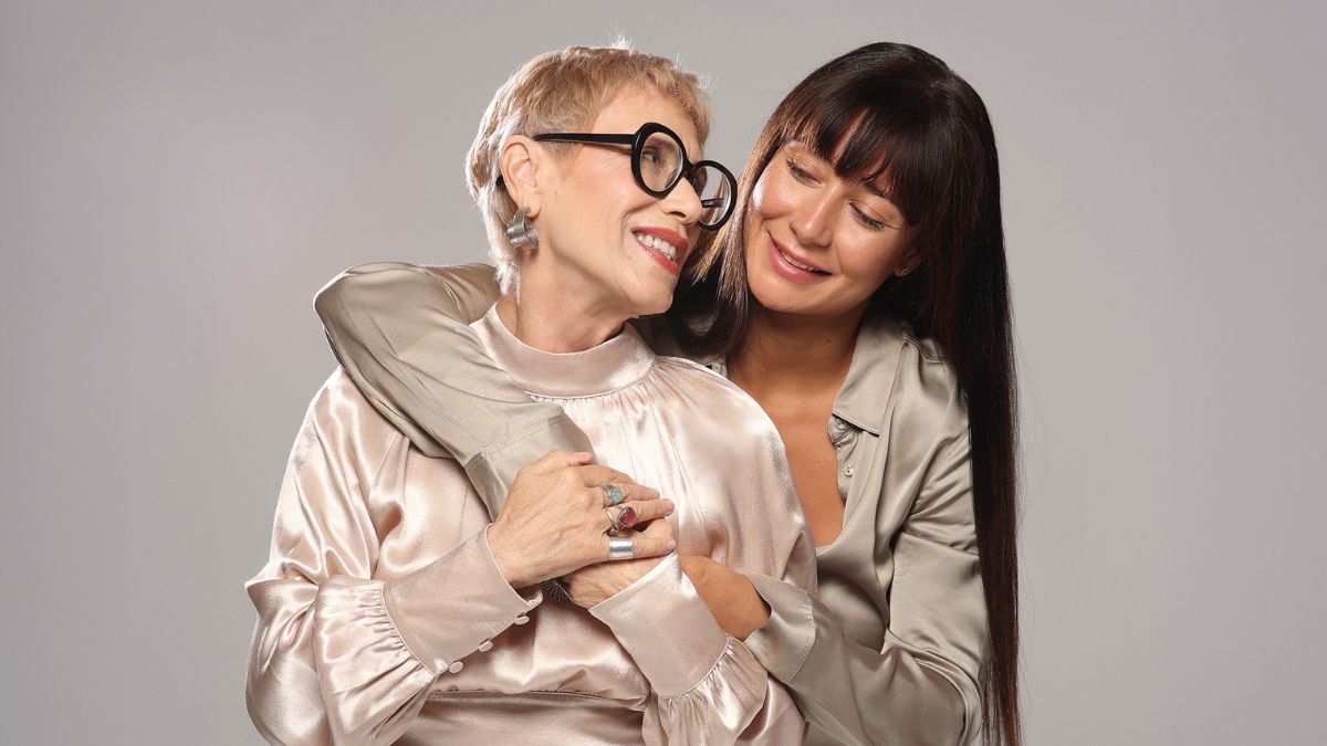 Έφη Κουτσονικολή: Σατέν μπλούζα και φούστα SISLEY, gr.sisley.com. Γυαλιά και κοσμήματα από προσωπική συλλογή/ Ζωή Ζωγοπούλου: Σατέν πουκάμισο και βαμβακερό παντελόνι MASSIMO DUTTI, massimodutti.com.