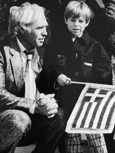 «Σημαδιακή φωτογραφία. Χαστούκι απ’ τον ξερόλα. Στα ψέματα βέβαια. Σχολική παράσταση είναι στα 1955, στο θεατράκι της παιδαγωγικής ακαδημίας. Έκτοτε έφαγα αρκετές μπάτσες από κορδωμένους κριτικούς, ενίοτε κι απ’ το αγαπητό κοινό. Το ‘χει η Τέχνη φαίνεται».