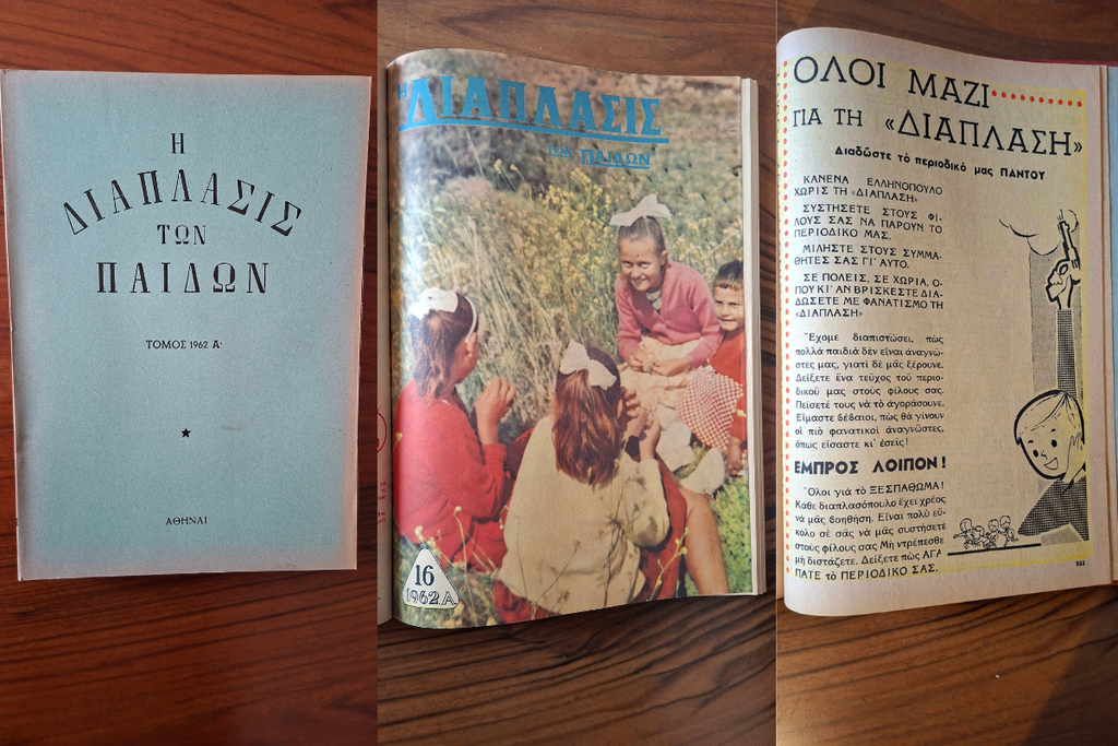 Τι μου θύμισες τώρα... | Έχεις κάποια (σχετική ή άσχετη με το σημερινό newsletter) ιστορία ή φωτογραφία που θα ήθελες να μοιραστείς μαζί μας; Στείλε μας τις αναμνήσεις σου μαζί με το ονοματεπώνυμό σου, και σύντομα θα τις δεις να δημοσιεύονται στο newsletter. Διάπλασις Η σημερινή μας ανάμνηση, έρχεται από τη δεκαετία του ’60 και τα ράφια ενός παλαιοβιβλιοπωλείου, στο κέντρο της Αθήνας, στο οποίο έτυχε να εντοπίσω πριν μερικούς μήνες έναν βιβλιοδετημένο τόμο του θρυλικού εβδομαδιαίου παιδικού περιοδικού «Η διάπλασις των παίδων», που ιδρύθηκε το 1879, και με ορισμένες διακοπές κυκλοφόρησε ως το 1970. Οι σελίδες τους ήταν γεμάτες από διηγήματα, ποίηση, ασκήσεις, παιχνίδια, σπαζοκεφαλιές, φωτογραφίες, αφιερώματα, ενώ μεγάλο μέρος της ύλης αφιερωνόταν, στην επικοινωνία, καλή ώρα, με το αναγνωστικό κοινό. Τα παιδιά με το πραγματικό τους όνομα ή με ψευδώνυμο έστελναν κείμενα προς δημοσίευση ή επικοινωνούσαν μεταξύ τους μέσω της σελίδας των μικρών αγγελιών. Η διάπλαση όμως παρέμενε διάπλαση. Ενδεικτικά, παρατίθεται μήνυμα των συντελεστών προς τους μικρούς αναγνώστες, στο τεύχος της 17ης Μαρτίου 1962. «Μερικά παιδιά κάνουνε κατάχρηση της καλωσύνης μου και στέλνουν πολλά κείμενα για τη Σελίδα Συνεργασίας, αρκετές πνευματικές ασκήσεις κλπ. Εκτός από τις άλλες ανωμαλίες που μου δημιουργεί αυτός ο πληθωρισμός, είναι και σε βάρος της ποιότητας. Προσπαθήτε να στέλνετε λίγα πράγματα αλλά εκλεκτά. »Να σέβεσθε το όνομά σας. Και το ψευδώνυμό σας και να το βλέπετε πάντα κάτω από καλά κείμενα. »Ευτυχώς, είναι λίγα τα διαπλασόπουλα, που δεν τηρούνε το μέτρο στην αποστολή συνεργασίας. Η ΔΙΑΠΛΑΣΙΣ»