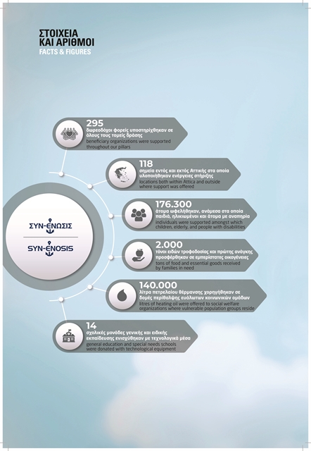 Ενα πολυδιάστατο έργο που εστιάζει στην πολυεπίπεδη στήριξη της χώρας υλοποιεί με συνέπεια τα τελευταία χρόνια η ΣΥΝ-ΕΝΩΣΙΣ, η Αστική Μη Κερδοσκοπική Εταιρεία Κοινωνικής Προσφοράς Ελληνικού Εφοπλισμού. Η ίδρυση της ΣΥΝ-ΕΝΩΣΙΣ, το 2016, έπειτα από πρωτοβουλία μελών της Ενωσης Ελλήνων Εφοπλιστών, αποτελεί μοναδικό παράδειγμα συλλογικής, ουσιαστικής και υπεύθυνης κοινωνικής στάσης ενός ολόκληρου κλάδου. Με τη δημιουργία της, η Ναυτιλία των Ελλήνων πρωτοπορεί και διαμορφώνει νέα πρότυπα κοινωνικής προσφοράς και ευρύτερων κοινωφελών έργων.