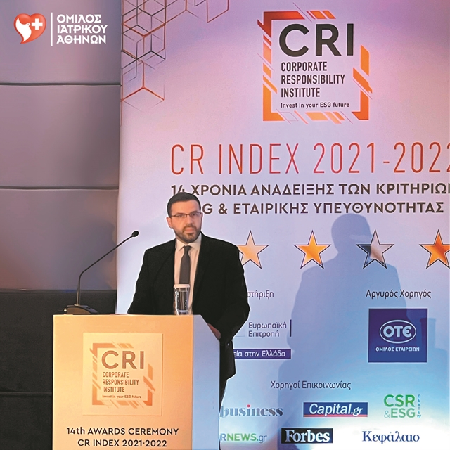 Ο Ομιλος Ιατρικού Αθηνών τιμήθηκε για δεύτερη συνεχή χρονιά με την Gold Διάκριση ως Top Performing ESG Company, στο πλαίσιο της διαδικασίας αξιολόγησης των εταιρειών που συμμετείχαν στον Δείκτη CR Index 2021-2022.