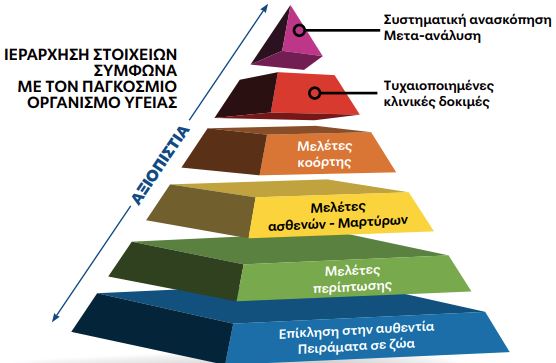 Ποικίλες ιεραρχήσεις έχουν προταθεί για να αναδείξουν τη σχετική δύναμη και αξιοπιστία διαφόρων πηγών δεδομένων. Ολες οι ιεραρχήσεις της ιατρικής βιβλιογραφίας συμφωνούν ότι η συστηματική ανασκόπηση και η μετα-ανάλυση βρίσκονται στην κορυφή της πυραμίδας των μεθοδολογιών που αξιολογούν καλύτερα τα διαθέσιμα επιστημονικά ευρήματα και στοιχεία.