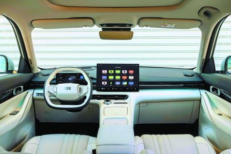 Η εξωτερική μινιμαλιστική και απολύτως σύγχρονη εικόνα του κατοπτρίζεται και στις προδιαγραφές του εσωτερικού, με κυρίαρχη την κεντρική οθόνη των 15,4 ιντσών σε συνδυασμό με ψηφιακό πίνακα οργάνων και Head-up Display, ενώ στα στοιχεία του εξοπλισμού συγκαταλέγονται, μεταξύ άλλων, premium ηχοσύστημα με 16 ηχεία και ισχύ 1.000 W και αεριζόμενα καθίσματα με λειτουργία μασάζ έξι προγραμμάτων, δίνοντας μια χροιά πολυτέλειας. Αυτή υπογραμμίζεται από την ποιότητα και τη συναρμογή των υλικών αλλά και από το μεταξόνιο των 2,75 μέτρων, διαμορφώνοντας ένα περιβάλλον σύγχρονης πολυτέλειας.