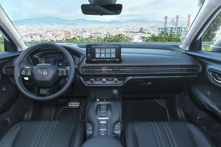 Το ταμπλό και η εργονομία του ZR-V παραπέμπουν στο Civic με καθαρές γραμμές, φυσικούς διακόπτες, ψηφιακό πίνακα οργάνων, οθόνη αφής μόλις 9 ιντσών με παλιομοδίτικο στυλ αλλά άψογη λειτουργία του infotainment, με υποστήριξη Apple CarPlay και Android Auto. Ο επιλογέας ταχυτήτων στην κεντρική κονσόλα έχει αντικατασταθεί από κουμπιά για τις διαφορετικές λειτουργίες του κιβωτίου, απόφαση που δημιουργεί εργονομικά πλεονεκτήματα τα οποία αντισταθμίζουν τη σκούρα παραδοσιακή αισθητική του θαλάμου επιβατών με τα άνετα καθίσματα και τους καλούς χώρους για γόνατα και κεφάλια πίσω. Ο δε χώρος αποσκευών των 390 λίτρων δεν είναι ο κορυφαίος σε όγκο στην κατηγορία αλλά είναι λειτουργικός και εύκολα προσβάσιμος.