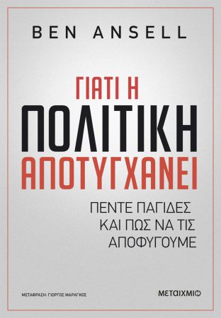 Ο καθηγητής της Οξφόρδης Μπεν Ανσελ, με το βιβλίο Γιατί η πολιτική αποτυγχάνει – Πέντε παγίδες και πώς να τις αποφύγουμε (μτφρ. Γιώργος Μαραγκός, εκδ. Μεταίχμιο) εξηγεί γιατί δεν ζούμε σε μια δίκαιη, ευημερούσα και με σεβασμό στο περιβάλλον κοινωνία.
