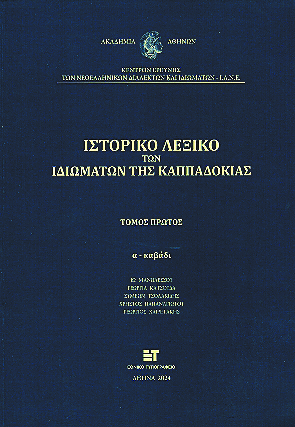 Είναι ήδη έτοιμο και ηλεκτρονικά διαθέσιμο σε όλους το τρίτομο Ιστορικό λεξικό των ιδιωμάτων της Καππαδοκίας, του οποίου κυκλοφορεί τυπωμένος ο πρώτος τόμος (2024) και αναμένεται να ακολουθήσουν οι επόμενοι δύο, μια νέα προσθήκη στη σειρά διαλεκτικών λεξικών της Ακαδημίας Αθηνών, του Λεξικού της Τσακωνικής Διαλέκτου (1986-1987) και του Ιστορικού Λεξικού των Ελληνικών Ιδιωμάτων της Κάτω Ιταλίας (1984-1992).