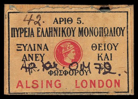 Αποκόμματα χαρτονιού από συσκευασίες διαφόρων προϊόντων (εδώ από σπίρτα) χρησιμοποιήθηκαν ως αυτοσχέδιες καρτέλες για τα ευρήματα ανασκαφών. Φωτογραφία DAI ATHEN