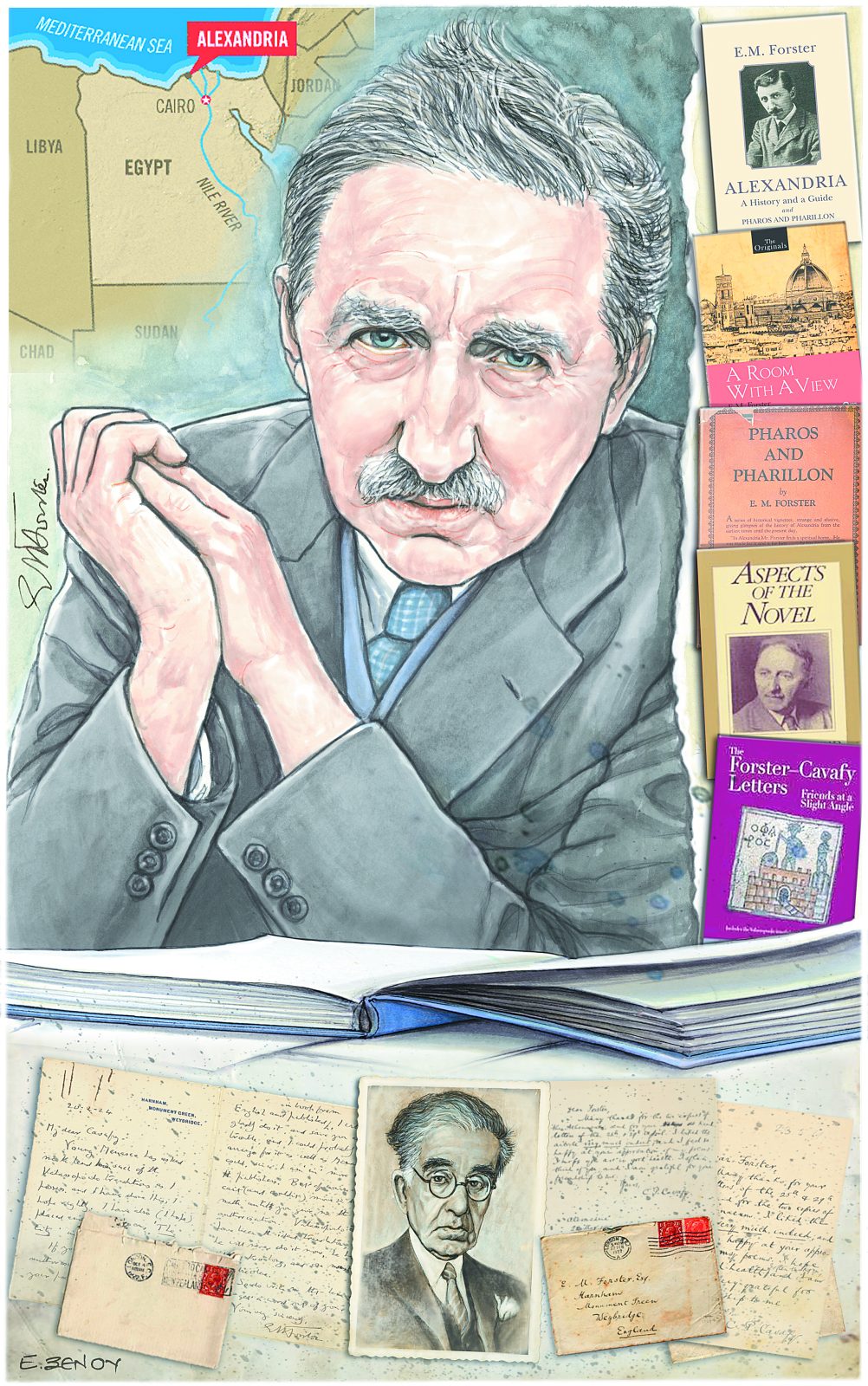Το 1914 φτάνει στην Αίγυπτο ένας πολύ γνωστός βρετανός συγγραφέας, που την επόμενη δεκαετία η φήμη του θα έφτανε στο κατακόρυφο. Είχε ήδη εκδώσει δύο από τα καλύτερα μυθιστορήματά του, το Δωμάτιο με θέα (1908) – που παραμένει το πιο δημοφιλές βιβλίο του – και το Χάουαρντς Εντ (1910). Ως μεγάλος συγγραφέας όμως θα καθιερωνόταν το 1924 με το αριστουργηματικό του Πέρασμα στην Ινδία. Ηταν ο Ε. Μ. Φόρστερ, που για μας – και όχι μόνο – έχει μια επιπλέον σημασία, αφού ήταν εκείνος που θα άνοιγε τον δρόμο για την καθιέρωση του Κ. Π. Καβάφη ως ενός από τους κορυφαίους ποιητές του 20ού αιώνα, συστήνοντάς τον στο βρετανικό κοινό και ιδιαίτερα στα μέλη του Κύκλου του Μπλούμσμπερι της Βίρτζινια και του Λέoναρντ Γουλφ. Ο Φόρστερ ήταν κι εκείνος επιφανές μέλος του Κύκλου στις δεκαετίες του 1910 και του 1920.