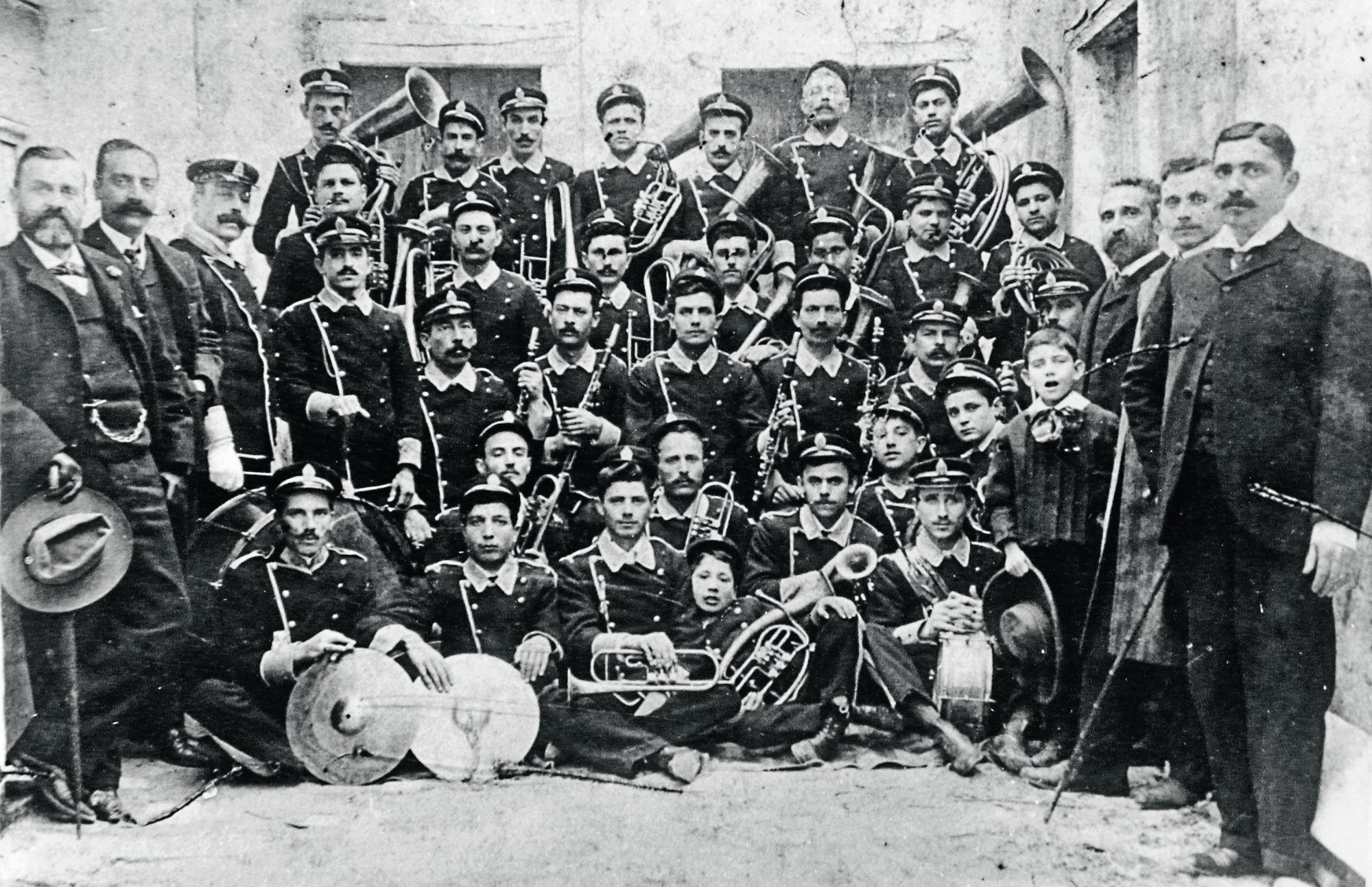 Η Φιλαρμονική Ζακύνθου στις 5 Μαρτίου 1905 υπό τον Φραντσέσκο Νικολίνι (τρίτος από αριστερά) και το Διοικητικό της Συμβούλιο
