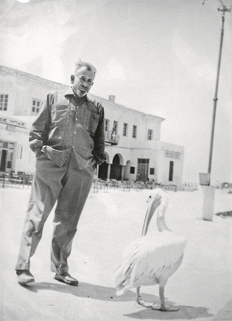 Στην εξηντάχρονη ανάδυσή της ως κοσμικό προσκύνημα της Μεσογείου η Μύκονος έχει προσελκύσει τα διασημότερα ονόματα της υδρογείου. Εναν χρόνο μετά την ιστορική αποβίβαση στο νησί της Τζάκι Κένεντι, πρώτης κυρίας των Ηνωμένων Πολιτειών της Αμερικής, ένας άλλος Αμερικανός θα (μα)γευόταν (από) την απέριττη κυκλαδίτικη ομορφιά του. Ο Μάιος του 1962 ήταν ο ελληνικός μήνας του Τζον Στάινμπεκ (1902-1968). Στη δύση της καριέρας του και με γοργά φθίνουσα υγεία, ο συγγραφέας ξεκίνησε μια οικογενειακή περιοδεία στην Ευρώπη. Φθάνοντας με πλοίο από το Μπάρι, κατευθύνθηκε στην Αθήνα, όπου μίλησε στο Αμερικανικό Κολλέγιο, συνάντησε παλιούς φίλους (Παξινού και Μινωτή), και έλαβε προφορική διαβεβαίωση από το βασιλικό ζεύγος ότι αν συνεργαζόταν ξανά με τον Καζάν θα είχαν στη διάθεσή τους ένα νησί για τα γυρίσματα της ταινίας. Κατόπιν επισκέφθηκε νησιά του Αιγαίου. Η παραμονή του στη Μύκονο απαθανατίστηκε σε τρεις φωτογραφίες (ειδικές συλλογές του Πανεπιστημίου Στάνφορντ), δύο από τις οποίες δημοσιεύουμε δεξιά. Η δε συνάντηση με τον Πέτρο τον πελεκάνο αποδείχθηκε τυχερή. Τον Οκτώβριο του 1962 ο Στάινμπεκ έλαβε το Νομπέλ Λογοτεχνίας.