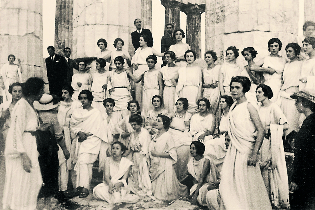 Από την εορτή του Σταδίου το 1925. Τότε χορεύτηκαν για πρώτη φορά αρχαιοπρεπείς «ρυθμικοί χοροί» (διδασκαλία Μαρί Ραϋμόν). Φωτογραφικό Αρχείο Λυκείου Ελληνίδων