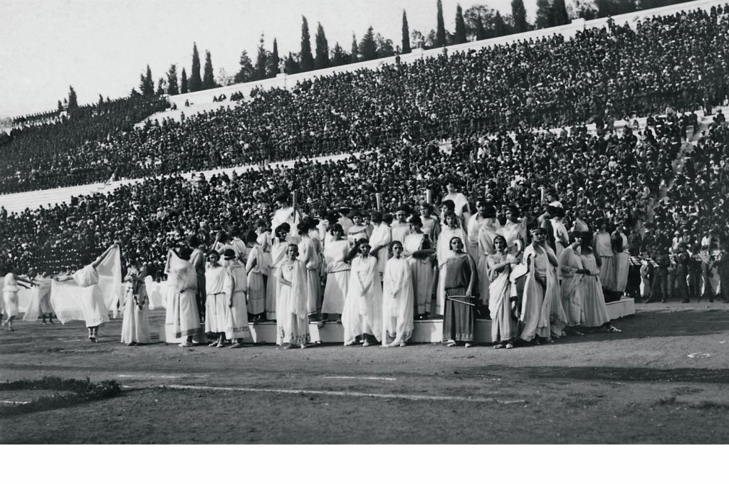 Από την εορτή του Σταδίου το 1925. Τότε χορεύτηκαν για πρώτη φορά αρχαιοπρεπείς «ρυθμικοί χοροί» (διδασκαλία Μαρί Ραϋμόν). Φωτογραφικό Αρχείο Λυκείου Ελληνίδων