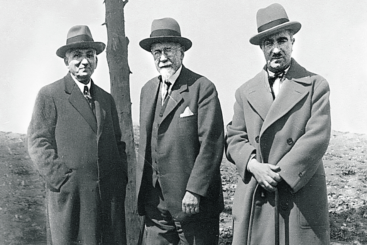 Οι αρχαιολόγοι Κωνσταντίνος Κουρουνιώτης, Φράνσις Χ. Μπέικον και ο Παναγιώτης Αριστόφρων το 1931
